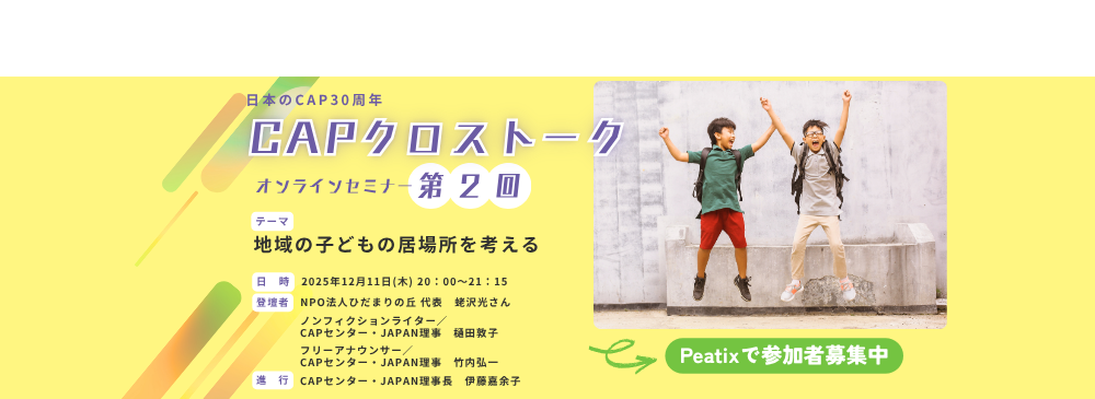 【12月11日開催オンラインセミナー】CAPクロストーク第2回 日本のCAP30周年【テーマ:地域の子どもの居場所を考える】