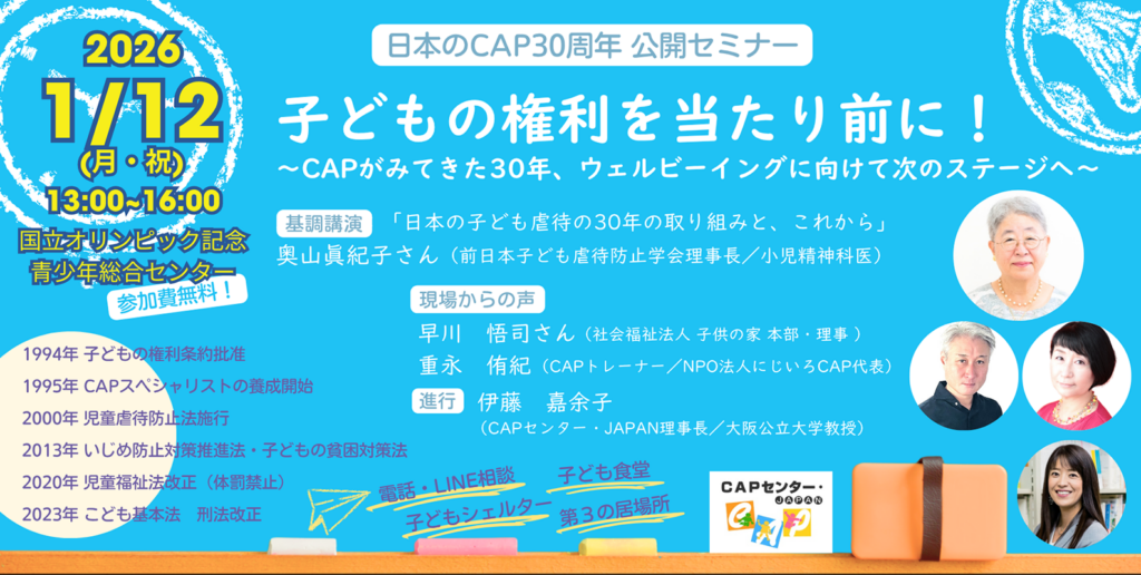 日本のCAP30周年 公開セミナー「子どもの権利を当たり前に!~CAPがみてきた30年、ウェルビーイングに向けて次のステージへ~」